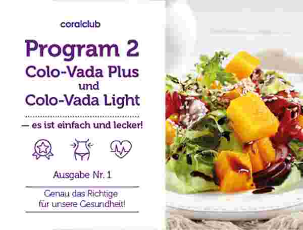 Diese Broschüre ist für diejenigen gedacht, die sich auf das Colo-Vada Plus oder Colo-Vada Light Programm vorbereiten. In dieser Broschüre findest Du eine Liste von Lebensmitteln, die während des Programms gestattet sind und solche, die Du vermeiden solltest. Du findest dort Bilder, Tipps und natürlich Rezepte zu den empfohlenen Lebensmitteln des Programms.
