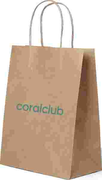 Kraftpapier-Tragetasche mit Firmenlogo und Griffen - eine umweltfreundliche, stilvolle und zeitgemäße Verpackungsmöglichkeit für alle Arten von Waren.